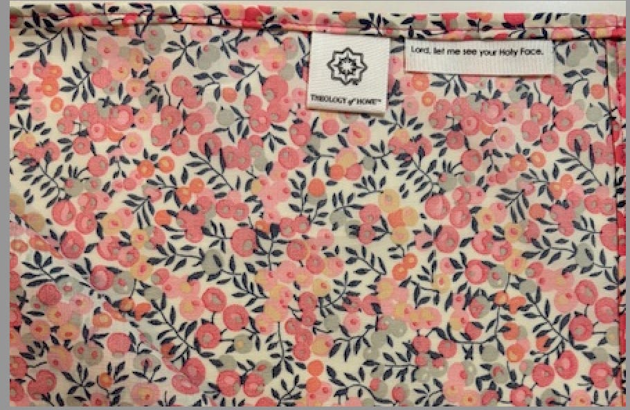 Theology of Home created the Holy Face Bandana, which has sewn into it a subtle message that is both a plea and a prayer, "Lord, let me see your Holy Face." It is a great and active, although subtle reminder of prayer and petition. Can easily be worn as a scarf, headband, or tied on bag or purse handle.